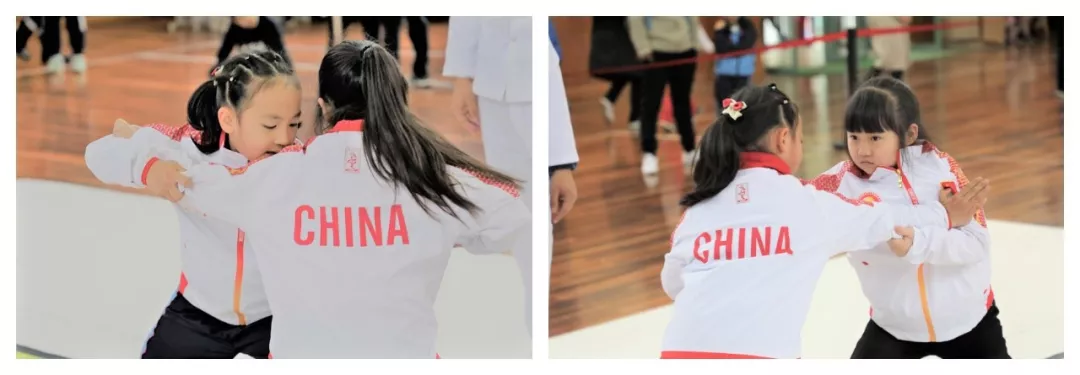 开幕式上,宝虹小学、鹿鸣学校、高境四中分别进行了太极少年推手课程一阶、二阶、三阶内容展示